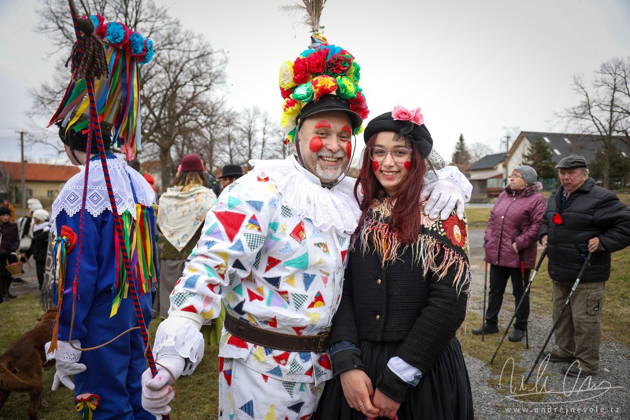 Maškary se sešly v hojném počtu a měly před sebou dlouhou a náročnou cestu. Jejich cílem bylo projít celou vesnicí a zastavit se u každého stavení. Každá zastávka přinášela nové zážitky, veselí a občerstvení, a tak se průvod s živou hudbou postupně vydával dál a dál.